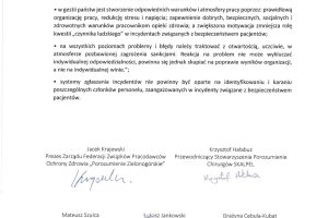 (…) regulacje i mechanizmy zawarte w rządowym projekcie nie przełożą się na realną poprawę jakości i bezpieczeństwa. Proponowane przepisy nie są odpowiedzią na potrzeby pacjentów dotyczące stworzenia skutecznego systemu kompensacji szkód medycznych. Projekt nie uwzględnia postulatów środowisk medycznych związanych z bezpieczeństwem wykonywania zawodu.